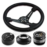 NRG-SRK-141H+200BK+101MB+018R, NRG Innovations 13.78" 350mm 3" Deep Dish Style Black Leather Red Stitch Black Spokes Racing Steering Wheel Combo with 6 Hole Short Hub Adapter with Gen 2.0 Black Quick Release with Matte Black Lock Hub Kit SRK-141H