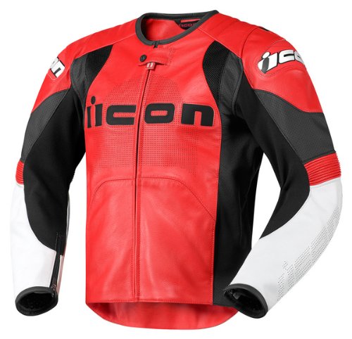 ICON OVERLORD PRIME LEATHER JACKET RED MD?1.2-1.4mm premium-grade Brazilian leather chassis Removable Field Armor elbow and shoulder impact protectors External injection-molded plastic protection on shoulders, elbows and back Removable dual-density foam back pad Removable wind-resistant insulated vest Gathered stretch panels for comfort and flexibility Perforated leather in key areas for superior ventilation YKK autolock zippers Upgradable to Icon Stryker CE-approved back protector Icon attack fit with tailored body and pre-curved arms